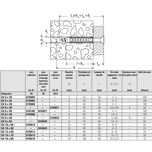 La cheville à expansion nylon de la marque Fischer est une cheville à quadruple expansion permettant une transmission optimale des forces dans le matériau de construction. Elle garantit une fixation sûre et durable grâce à sa matière de fabrication de qualité supérieure qui est le nylon, et son mode d’expansion caractéristique. De plus, elle est facile à installer. La collerette intégrée évite que la cheville glisse dans le forage.