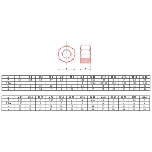 | Diamètre nominal (mm) | 5, 6, 7, 8, 10, 12, 14, 16, 18, 20, 22, 24, 27, 30, 33, 36, 42, 56, 60, 64 |