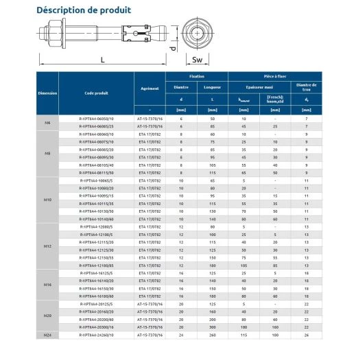 Le goujon d’ancrage inox A4 de la marque Rawl est un goujon d’ancrage à haute performance agréé ATE Option 7 pour béton fissuré et non fissuré, qui de par sa structure, offre une résistance maximale à la corrosion ainsi qu’une capacité de charge maximale. Il possède une forte résistance au feu et dispose de repères d’enfoncement permettant une installation précise. Aussi, tout contact avec l’armature peut être évité par une utilisation avec l’ancrage de profondeur réduite. Le design de ce goujon offre une praticité grâce à une mise en œuvre sans effort au travers de la pièce à fixer.