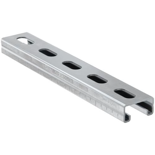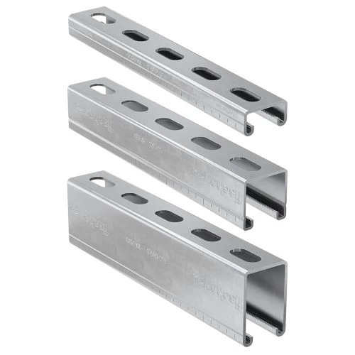 Les rails FUS de la marque Fischer sont faits en acier Sendzimir électrozingué min. 15 µm résistant au feu pour une exposition continue de 120 minutes. Ils disposent d’une géométrie de base identique garantissant la compatibilité avec la vaste gamme d’accessoires pour toutes les dimensions de rails. Ils disposent également d’un crantage offrant un maintien sûr des platines écrous pour la reprise de charges de cisaillement élevées, utile par exemple en cas de montages verticaux. Aussi, les rails sont munis de graduations simplifiant la découpe sur mesure et le positionnement des éléments à fixer lors du montage. Enfin, les trous oblongs sur les rails offrent davantage de flexibilité durant l’installation.