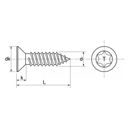 | Forme de la tête | Fraisée |